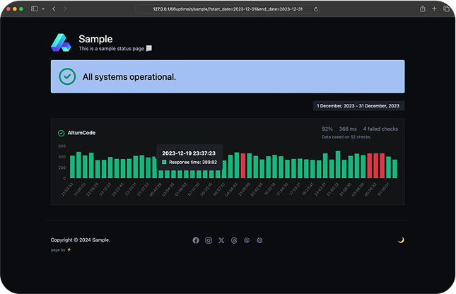 Cada página de status que você cria recebe análises úteis