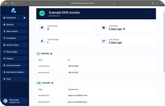 Evite o sequestro de DNS e receba notificações sempre que os registros DNS do seu domínio forem alterados.